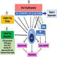 | Abstract | Lupus glomerulonephritis (LN) is a complex autoimmune disease characterized by circulating autoantibodies, immune-complex deposition, immune dysregulation and defects in regulatory T cell (Tregs). Treatment options rely on general immunosuppressants and steroids that have serious side effects. Approaches to target immune cells, such as B cells in particular, has had limited success and new approaches are being investigated. Defects in Tregs in the setting of autoimmunity is well known and Treg-replacement strategies are currently being explored. The aim of this minireview is to rekindle interest on Treg-targeting strategies. We discuss the existing evidences for Treg-enhancement strategies using key cytokines interleukin (IL)-2, IL-33 and IL-6 that have shown to provide remission in LN. We also discuss strategies for indirect Treg-modulation for protection from LN. |