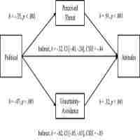 | Abstract | The political divide between liberals and conservatives has become quite large and stable, and there appear to be many reasons for disagreements on a wide range of issues. The current research sought to explain these divides and to extend the Uncertainty-Threat Model to intergroup relations, which predicts that more dispositional, perceived-threat and more uncertainty-avoidance will be related to more political conservatism. Given that conservatism is also often related to more negativity to low-status groups such as immigrants, the relationship between political ideology and negative attitudes toward immigrants may be mediated by more threat and uncertainty-avoidance. Study 1 tested this mediational hypothesis in a correlational design and showed that both uncertainty-avoidance and perceived realistic and symbolic threat significantly mediated the relationship between political ideology and attitudes toward immigrants, and that perceived threat was the more influential mediator. Study 2 extended threat management to perceived threats from unspecified outgroups, as opposed to the immigrant outgroup, and it replicated all significant mediations. Study 3 replicated the Study 1 and Study 2 mediations of political ideology to attitudes toward immigrants with uncertainty-avoidance and perceived threat from immigrants as mediators; it further replicated the mediations to the negative attitudes measure that had been used in Study 2 and it extended it to an objective and indirect bias measure (i.e., Affect Misattribution Procedure). Overall, almost all of the results supported the idea that perceived threat and uncertainty-avoidance both mediate the relationship between political ideology and attitudes toward immigrants, and that threat management, as opposed to negativity bias, may be a central concern separating liberals and conservatives. Within all three studies, we also observed more evidence for the Uncertainty-Threat Model predictions than we did for the alternative Extremity Hypothesis, which predicted a quadratic relationship between political ideology and threat and uncertainty, and between political ideology and attitudes toward immigrants. |