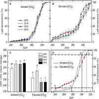 | Abstract | Climate change is expected to shift tree species distribution further polewards in the future. These shifts will expose trees to new photoperiod regimes and higher atmospheric carbon dioxide concentration ([CO2]). These factors will likely have interactive effects on the ecophysiological traits of plants, particularly in the boreal region where the climate change will be the most prominent. This study investigated how CO2 elevation and photoperiod regimes interactively influence the timing of bud development, leaf senescence, cold hardiness, and bud break in white birch (Betula papyrifera Marsh.). Seedlings were exposed to ambient ([CO2]) (AC= 400 μmol mol−1) or elevated (EC= 1000 μmol mol−1) and photoperiod regimes (at 48 (seed origin), 52, 55, and 58º N latitude) under controlled environment for two growing seasons. We found that EC advanced the initiation of leaf color change in the fall by 23 days, but delayed the completion date. Leaf senescence started earlier at photoperiods of 55 and 58° N latitude than at those of 48 and 52o N latitudes under EC, but no differences occurred under AC. Additionally, the temperature causing 50% electrolyte leakage (a measure of susceptibility to freezing damage) was more negative at two longest photoperiods under EC (-46 ºC at 55º, -60 ºC at 58º N) than other conditions (>-40 ºC). Budburst occurred earlier at the two longest photoperiods under EC, but the trend was opposite under AC. Our study highlights the complex interaction between photoperiod and CO2 conditions to alter autumnal and spring phenology of birch that is required to ensure successful seedling recruitment in new habitats and thus should be considered in predicting the future distribution and productivity of boreal trees. |