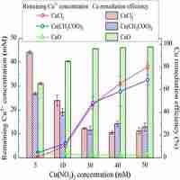 | Abstract | Heavy metal contamination can not only cause threats to human health but also raise sustainable development concerns. The use of traditional methods to remediate heavy metal contamination is, however, time-consuming, and the remediation efficiency may not meet the requirements as expected. The present study conducted a series of test tube experiments to investigate the effect of calcium source on the lead and copper removals. In addition to the test tube experiments, numerical simulations were performed using the Visual MINTEQ software package considering different degrees of urea hydrolysis derived from the experiments. The remediation efficiency degrades when NH4+ and OH- concentrations are not sufficient to precipitate the majority of Pb2+ and Cu2+. It also degrades when CaO turns pH into highly alkaline conditions. The numerical simulations do not take the dissolution of precipitation into account, and therefore, overestimate the remediation efficiency when subjected to lower Pb(NO3)2 or Cu(NO3)2 concentrations. The findings highlight the potential of applying the enzyme-induced carbonate precipitation to lead and copper remediations. |