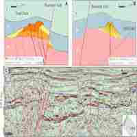 | Abstract | The types of volcanic edifices and volcanic eruption patterns control the accumulation and distribution of oil and gas. By means of drilling, seismic and geochemical analysis, the types and distribution of Carboniferous volcanic edifices in the Shixi area of Junggar Basin were studied, and the formation mechanism of magma was clarified, and the eruption patterns of volcanoes were investigated. The results show that the types of Carboniferous volcanic edifices in the Shixi area mainly include stratovolcanic edifices, basic shield volcanic edifices and mounds superimposed volcanic edifices. Stratovolcanic edifices and mounds superimposed volcanic edifices are developed around Shixi fault, while single stratovolcanic edifices are developed around Mobei fault. Basic shield volcanic edifices are only developed in the south of Shixi area. Vertically, volcanic edifices are mainly developed on the hanging wall of the faults. When the faults develop, the volcanic vents are dendritic, forming mounds superimposed volcanic edifices in space. On the plane, there are more volcanic edifices in Shixi salient than mobei salient. Intermediate-acid volcanic edifices are distributed in beaded shape along one side of Shixi fault and Mobei fault, while basic volcanic edifices are distributed in sheet shape on both sides of Dinan fault. In the early Carboniferous, the Shixi area was in the island arc environment under the subduction of oceanic crust. The basic magma came from the melting of subduction plate, and the intermediate-acid magma came from the partial melting of the crust. In the late carboniferous, the extensional environment formed by the retraction of subduction plate led to the formation of large-scale volcanic eruption. The extensional environment formed by the retreat of subduction plate in the later stage resulted in a large scale volcanic eruption. |