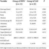 | Abstract | Background: Cervical pregnancy (CP) is an uncommon type of ectopic pregnancy with a rising risk to life. Currently, there is no universal protocol for the safe and effective management of CP. This study aimed to investigate the clinical efficacy of high-intensity focused ultrasound ablation (HIFU) versus uterine artery embolization (UAE) in the management of CP to develop a standard for the treatment of CP. Methods: From January 2015 to October 2021, 36 patients with CP were diagnosed, treated, and followed-up at the Department of Gynecology of Third Xiangya Hospital of Central South University. Eleven patients were treated with HIFU followed by suction curettage under hysteroscopic guidance and 25 patients were treated with UAE followed by suction curettage under hysteroscopic guidance. Medical records and pregnancy outcomes were retrospectively analyzed. Results: Compared to the UAE group, the HIFU group had a shorter interval time (1.5±0.21 days vs 2.6±0.26 days), shorter duration of hospitalization (5.5±0.31 days vs 6.6±0.21 days), shorter recovery time of menstruation (30.6±7.09 days vs 36.9±5.54 days), fewer adverse reactions (0/11 vs 9/25), and fewer postoperative complications (1/11 vs 8/25). There were no significant differences in age, gravidity, parity, abortion, gestational age, cardiac pulsation, admission symptoms, hemoglobin level, largest diameter of the sac/mass, serum hCG level at admission, hospitalization expenses, hospitalization days, blood loss during curettage, degree of hCG decline, residue after curettage, fertility requirement, and pregnancy outcomes. Conclusion: Both HIFU and UAE are safe and effective in the treatment of patients with CP. Compared to UAE, HIFU treatment for CP is a safer and more effective therapeutic schedule owing to the advantages of being more minimally invasive, shorter interval time, shorter hospitalization days and recovery time of menstruation, fewer adverse reactions, and fewer postoperative complications. |