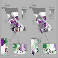 | Abstract | Introduction: There is an increasing interest in small area analyses in cancer surveillance; however, technical capacity is limited and accessible analytical approaches remain to be determined. This study demonstrates an accessible approach for small area cancer risk estimation using Bayesian hierarchical models and data visualization through the smallareamapp R package. Materials and Methods: Incident lung (N=26,448), female breast (N=28,466), cervical (N=1,478) and colorectal (N=25,457) cancers diagnosed among British Columbia (BC) residents between 2011-2018 were obtained from the BC Cancer Registry. Indirect age-standardization was used to derive age-adjusted expected counts and standardized incidence ratios (SIRs) relative to provincial rates. Moran’s I was used to assess strength and direction of spatial autocorrelation. A modified Besag, York and Mollie model (BYM2) was used to model incidence counts and calculate posterior median relative risks (RR) by Community Health Service Areas (CHSA; N=218) adjusting for spatial dependencies. Integrated Nested Laplace Approximation (INLA) was used for Bayesian model implementation. Areas with exceedance probabilities (above a threshold RR=1.1) greater or equal to 80% were considered to have elevated risk. The posterior median and 95% credible intervals (CrI) for the spatially structured effect were reported. Predictive posterior checks were conducted through predictive integral transformation values and observed versus fitted values. Results: The proportion of variance in the RR explained by a spatial effect ranged from 4.4% (male colorectal) to 19.2% (female breast). Lung cancer showed the greatest number of CHSAs with elevated risk (Nfemales=50/218, Nmales=44/218), representing 2357 total excess cases. The largest lung cancer RRs were 1.67 (95% CrI=1.06-2.50; exceedance probability=96%; cases=13) among females and 2.49 (95% CrI=2.14-2.88; exceedance probability=100%; cases=174) among males. Areas with small population sizes and extreme SIRs were generally smoothed towards the null (RR=1.0). Discussion: We present a ready to use approach for small area cancer risk estimation and disease mapping using BYM2 and exceedance probabilities. We developed the smallareamapp R package, which provides a user-friendly interface through an R-Shiny application, for epidemiologists and surveillance experts to examine geographic variation in risk. These methods and tool can be used to estimate risk, generate hypotheses, and examine ecologic associations while adjusting for spatial dependency. |