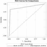 | Abstract | Background and purpose: Telestroke has grown significantly since its implementation. Despite growing utilization, there is a paucity of data regarding the diagnostic accuracy of telestroke to distinguish between stroke and its mimics. We aimed to evaluate diagnostic accuracy of telestroke consultations and explore the characteristics of misdiagnosed patients with a focus on stroke mimics. Methods: We conducted a retrospective study of all the consultations in our Ochsner Health’s TeleStroke program seen between April 2015 and April 2016. Consultations were classified into one of three diagnostic categories: stroke/transient ischemic attack, mimic, and uncertain. Initial telestroke diagnosis was compared with the final diagnosis post review of all emergency department and hospital data. Sensitivity, specificity, positive predictive value (PPV), negative predictive value (NPV), positive likelihood ratio (LR+) and negative likelihood ratio (LR-) for diagnosis of stroke/TIA versus mimic were calculated. Area under receiver-operating characteristic curve (AUC) analysis to predict true stroke was performed. Bivariate analysis based on the diagnostic categories examined association with sex, age, NIHSS, stroke risk factors, tPA given, bleeding after tPA, symptom onset to last known normal, symptom onset to consult, timing in the day, and consult duration. Logistic regression was performed as indicated by bivariate analysis. Results: 874 telestroke evaluations were included in our analysis. Accurate diagnosis through teleneurological consultation was seen in 85% of which 532 were strokes (true positives) and 170 were mimics (true negatives). Sensitivity, specificity, PPV, NPV were 97.8%, 82.5%, 93.7% and 93.4%, respectively. LR+ and LR- were 5.6 and 0.03. AUC (95% CI) was 0.9016 (0.8749-0.9283). Stroke mimics were more common with younger age and female gender and in those with less vascular risk factors. LR revealed OR (95% CI) of misdiagnosis for female gender of 1.9 (1.3-2.9). Lower age and lower NIHSS score were other predictors of misdiagnosis. Conclusion: We report high diagnostic accuracy of the Ochsner Telestroke program in discriminating stroke/TIA and stroke mimics, with slight tendency towards over diagnosis of stroke. Female gender, younger age and lower NIHSS score were associated with misdiagnosis. |